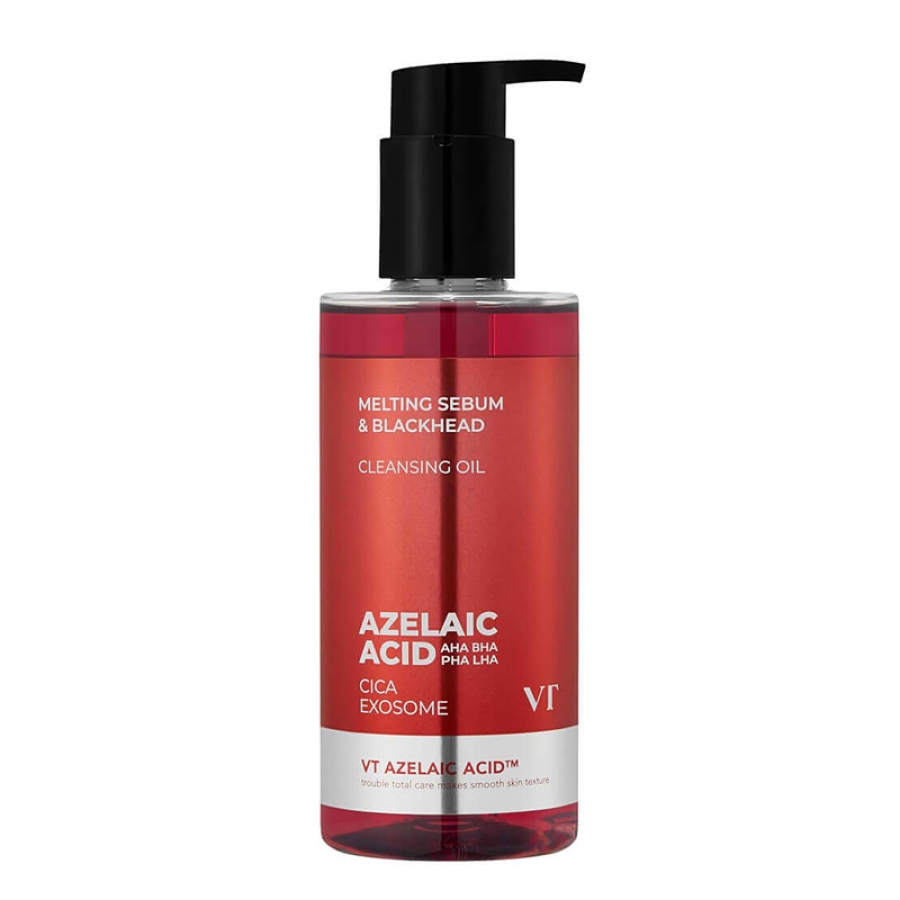 Гидрофильное масло с азелаиновой кислотой VT Cosmetics AZ Care Cleansing Oil разработано для бережного, но глубокого очищения кожи с выраженными признаками воспаления, жирным блеском и расширенными порами. Оно растворяет даже стойкий макияж, SPF и излишки себума, не нарушая естественный гидролипидный барьер. Содержит комплекс кислот, экзосомы центеллы, экстракты лаванды и розмарина.