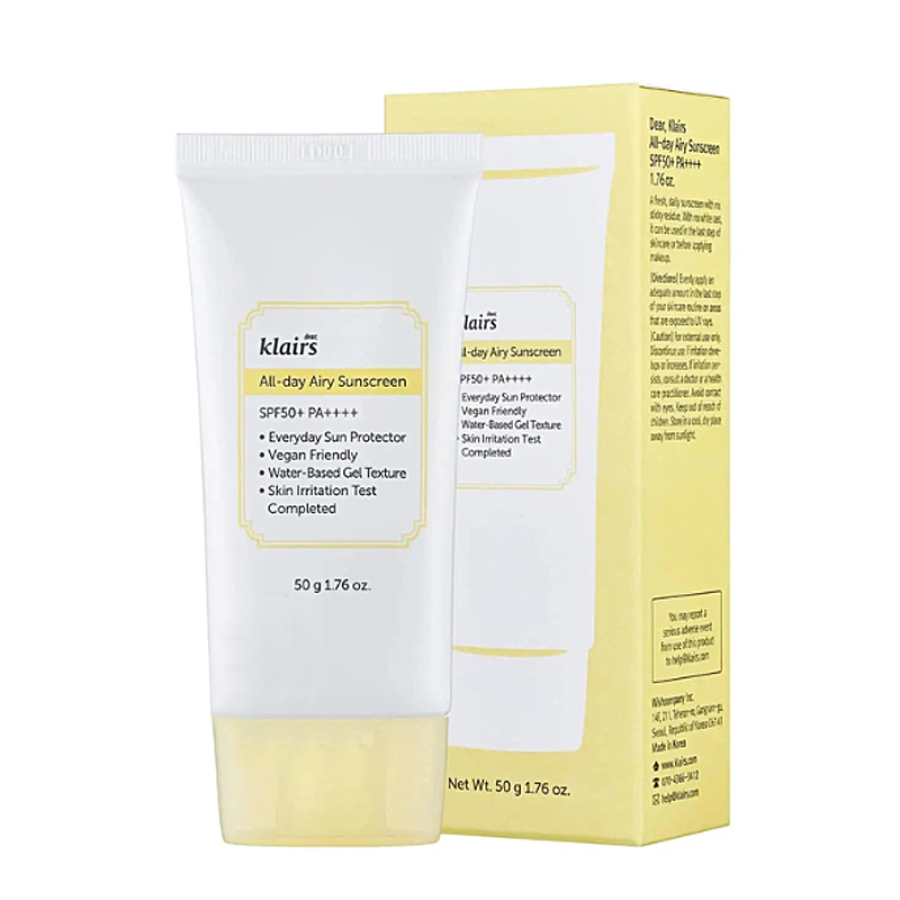 DEAR, KLAIRS All-day Airy Sunscreen SPF50+A++++