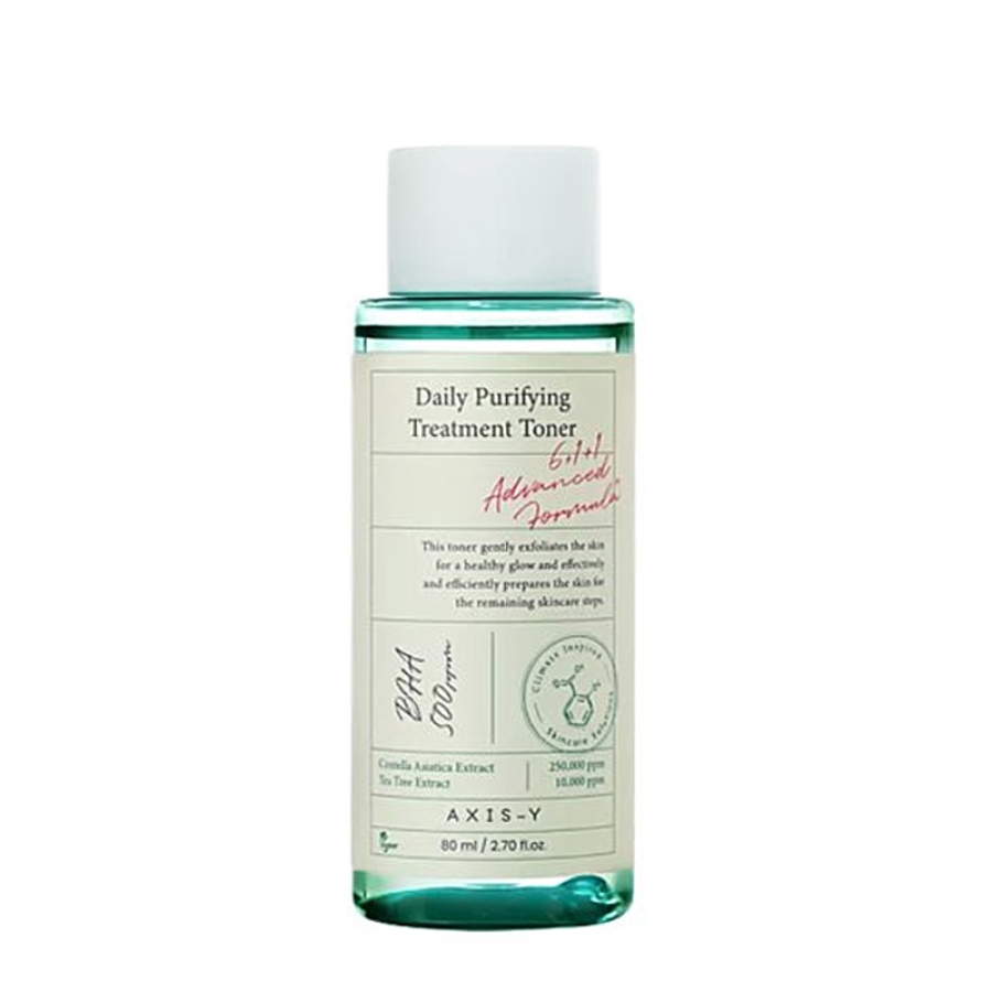 Тонер для проблемной кожи с центеллой и BHA-кислотой AXIS-Y Daily Purifying Treatment Toner подходит для мягкого ежедневного отшелушивания. Средство очищает поры и предотвращает их закупоривание, препятствует появлению воспалений и чёрных точек, поддерживает чистоту кожи и гладкость рельефа. Сужает расширенные поры, увлажняет и успокаивает, не вызывает раздражения. Имеет водянистую текстуру. Содержит 0,5% салициловой BHA-кислоты, AHA- и PHA-кислоту, экстракт центеллы азиатской, экстракт и масло чайного дерева, а также экстракты алоэ, хауттюйнии, полыни и лотоса.